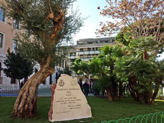 Gli interventi delle autorità, la benedizione del vicario generale della diocesi, ma anche, e soprattutto, i messaggi di pace letti dai ragazzi delle scuole elementari, medie e superiori che circondano, fisicamente parlando e non solo, le due aiuole ufficialmente inaugurate oggi, in piazza Natale D'Agostino, dopo la loro riqualificazione con inserimento di un ulivo della pace e di un cippo ai suoi piedi.