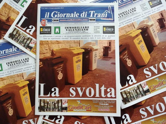 Torna in edicola il nostro quindicinale "Bombonotizie - Il Giornale di Trani" con una prima pagina dedicata alla sperimentale raccolta differenziata: "La svolta", l'esperimento si allargherà davvero a tutta la città? Intanto le abitudini di un quartiere stanno cambiando.