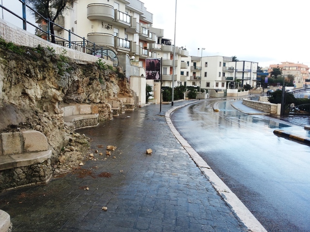 A causa di un’evidente infiltrazione di acque meteoriche, il terrapieno che sormonta il lungomare Cristoforo Colombo, all'altezza della confluenza con via Ancona, è parzialmente franato sul marciapiede sottostante. Le foto denotano in maniera chiara la situazione di criticità in cui ora il manufatto si presenta: probabilmente, adesso, servirà transennare l'intera zona per evitare problemi di pubblica incolumità.