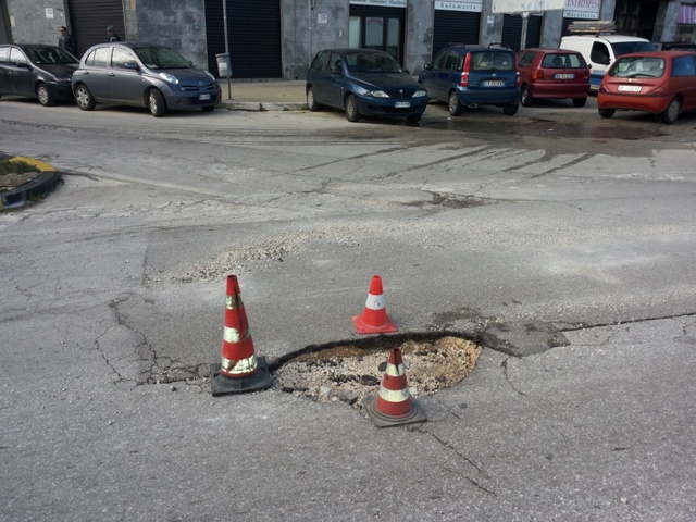 Sono arrivate le transenne in via Falcone, per mettere in sicurezza una delle buche più pericolose fra le tante che si sono aperte recentemente in città. La polizia locale sta monitorando con molta attenzione la situazione di estrema criticità, e la task force continuerà a segnalare allo stesso modo altre rotture particolarmente gravi del manto stradale. Oggi, infatti, alcuni coni stradali delimitano la profonda buca presente sul lungomare Chiarelli, all'incrocio con via Tasselgardo.
