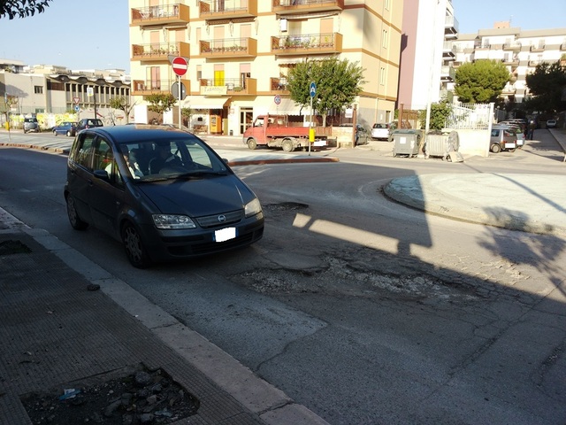 Si tratta di una strada interessata da un grande flusso di traffico data la vicinanza con una scuola ed essendo lo sbocco principale per chi vuole raggiungere il centro evitando il passaggio a livello. In viale de Gemmis la situazione non è poi tanto migliore: un cratere è stato segnalato con un transennamento totale al centro della strada.