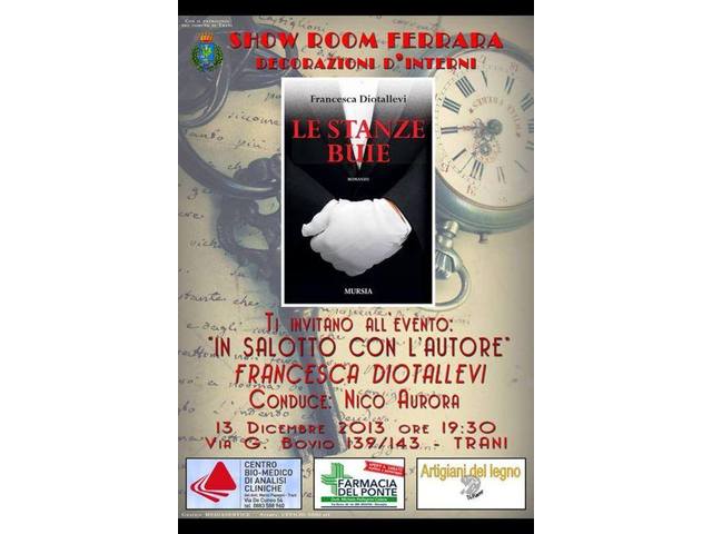 Si terrà oggi, venerdì 13 dicembre, alle 19.30, presso lo show room «Susanna Ferrara», in via Giovanni Bovio 139, per la serie «In salotto con l’autore», la presentazione del romanzo «Le stanze buie», di Francesca Diotallevi, edito da Mursia. Conduce l’incontro Nico Aurora.