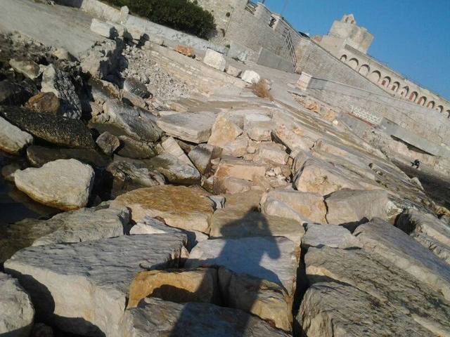 A distanza di soli due anni dagli ultimi lavori, il braccio artificiale che separa il Monastero di Colonna dalla Baia del pescatore è nuovamente franato. Le foto postate da un utente della pagina facebook «Tranispia» sembrano documentare un cedimento pressoché sovrapponibile a quello già verificatosi nella primavera del 2011.