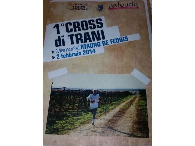 Presentata ufficialmente la prima edizione del "Cross di Trani" 1° Memorial Mauro De Feudis. La gara di corsa campestre organizzata dalla Trani Marathon sotto l'egida della Fidal, si svolgerà domenica 2 febbraio nei terreni di Villa Schinosa ed è aperta ai tesserati Fidal categorie maschile e femminile. Quattro i chilometri da percorrere per le categorie femminile e SM 60, con partenza fissata alle ore 9.30, mentre per i restanti partecipanti la competizione inizierà alle 10 e si dislocherà su di un pecorso lungo sei chilometri. Alle 11.30 ci saranno le premiazioni. Le iscrizioni potranno effettuarsi entro la mezzanotte del 30 gennaio con quota d'iscrizione di 5 euro. La gara si svolgerà in qualsiasi condizione atmosferica, ci saranno punti di ristoro con assistenza medica garantita prima, durante e dopo il termine della gara.