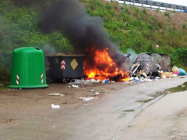 Questa volta il lettore che ci ha inviato questa segnalazione è sicuro: da lì, dai bidoni che vedete in fotografia, si è allontanato un uomo a bordo di un ciclomotore. Non ha fatto in tempo né a prendere il numero di targa né a riconoscerlo ma quel che ha visto gli è bastato per dirci che l'incendio è di origine dolosa.