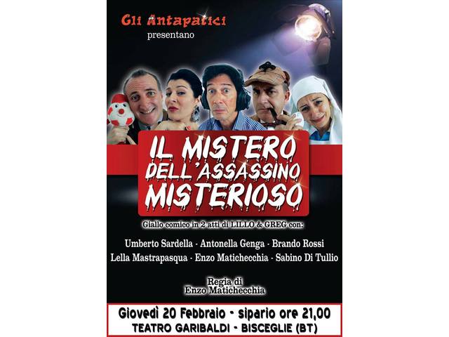 Lo spettacolo è un giallo comico in due atti scritto dal duo comico Lillo&Greg e sarà portato in scena da Umberto Sardella, Antonella Genga, Brando Rossi, Lella Mastrapasqua, Sabino Di Tullio e lo stesso Enzo Matichecchia nella duplice veste di attore-regista.