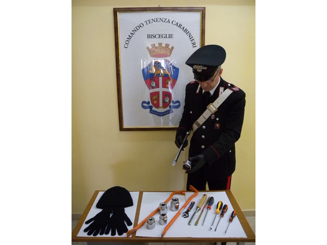 A Bisceglie nella notte di domenica i militari della locale Tenenza hanno arrestato un 30enne georgiano, sorpreso assieme a tre complici a forzare la porta di ingresso di un appartamento al 5° piano di un complesso residenziale. Alla vista dei Carabinieri, allertati dai vicini di casa, i malviventi hanno tentato di darsi alla fuga. Ne è scaturita una violenta colluttazione a seguito della quale il 30enne è stato bloccato mentre i complici, in corso di identificazione, sono riusciti a dileguarsi, approfittando del buio della zona ed abbandonando sul posto uno zaino contenente i “ferri del mestiere”, tra cui grossi cacciaviti, piedi di porco e guanti, il tutto sequestrato dai militari, poi ricorsi alle cure dei sanitari dell’Ospedale di Bisceglie per le ferite riportate. Dopo l’arresto, il georgiano, su disposizione della Procura della Repubblica di Trani, è stato associato presso la locale casa circondariale e dovrà rispondere di tentato furto aggravato, resistenza e lesioni a Pubblico Ufficiale, possesso ingiustificato di attrezzi da scasso. Due militari invece hanno riportato lievi lesioni giudicate guaribili in 10 giorni. Sempre a Bisceglie un 45enne è stato sorpreso fuori dalla propria abitazione, ove si trovava ristretto in regime di detenzione domiciliare, e perciò è stato arrestato per evasione.