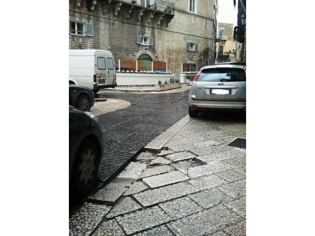 Quel tratto di strada si presenta così come ce lo documenta un utente attraverso il servizio Whatsapp (373.8770256), e tale segnalazione ci pone, dunque, nella condizione di sottoporla all'attenzione dell'amministrazione comunale, perché, proprio in considerazione del fatto che, adesso, sono disponibili 120mila euro per il rifacimento di alcune strade del centro urbano, non si dimentichi che quello storico, forse, ha ulteriore priorità per il bene dell’immagine che dobbiamo dare di Trani ai turisti.