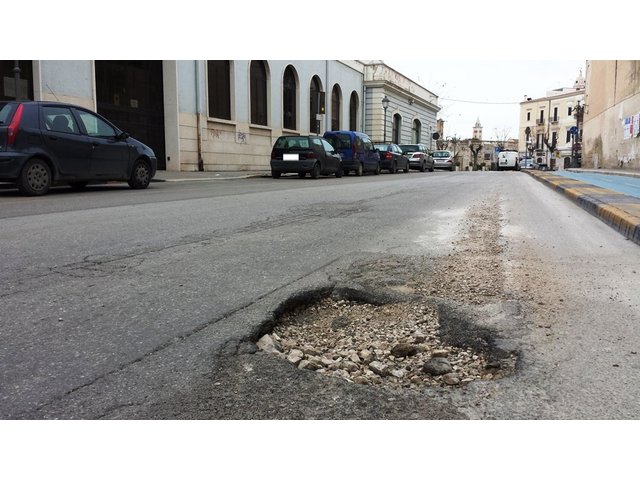 Nell'attesa dell'inizio dei lavori, recentemente annunciati dal sindaco, Gigi Riserbato, per la riparazione delle buche lungo la rete stradale di Trani, segnaliamo un altro importante cedimento in un luogo, peraltro, molto frequentato dall'utenza.