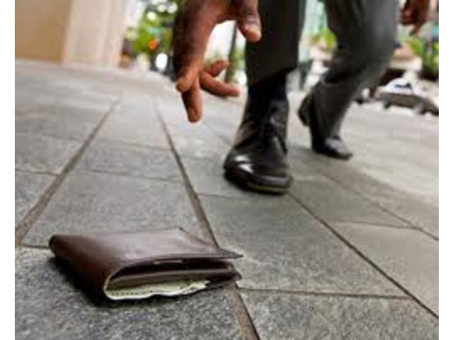 È accaduto l'altra sera, sul lungomare Cristoforo Colombo. Un impiegato di Trani, conosciuto soprattutto per essere un valente artista, ha trovato per terra, passeggiando, un portafoglio smarrito: al suo interno, 250 euro una carta di credito, una scheda bancomat, i documenti ed altri effetti di una persona, anche in questo caso di Trani, che aveva perso quell'oggetto ed il suo contenuto senza rendersene conto.