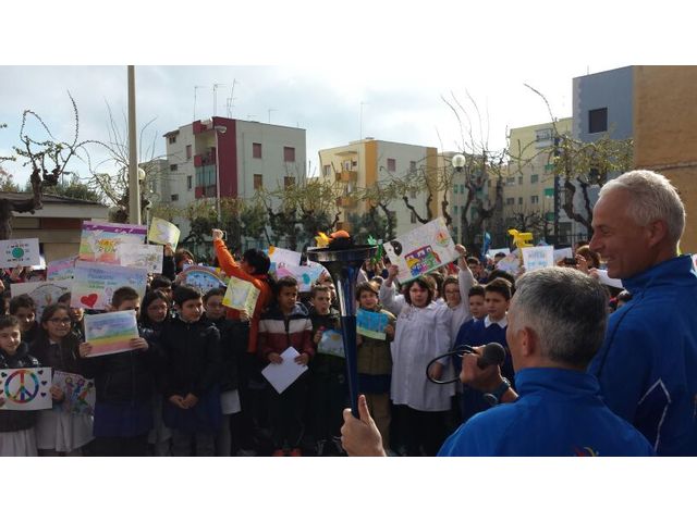 Accolta ieri dalla pioggia, stamani la «Peace run» è ripartita con il sole. Ecco le foto dell'arrivederci della città alla fiaccola della pace, gentilmente inviateci dall'amico Gianluca. Stamani, prima di ripartire alla volta di Matera, i tedofori, molti dei quali provenienti da paesi esteri, incontreranno gli studenti delle scuole Petronelli (ore 8.15), Bovio Palumbo (ore 9.15) e D’Annunzio (ore 10.15) per un momento di riflessione.