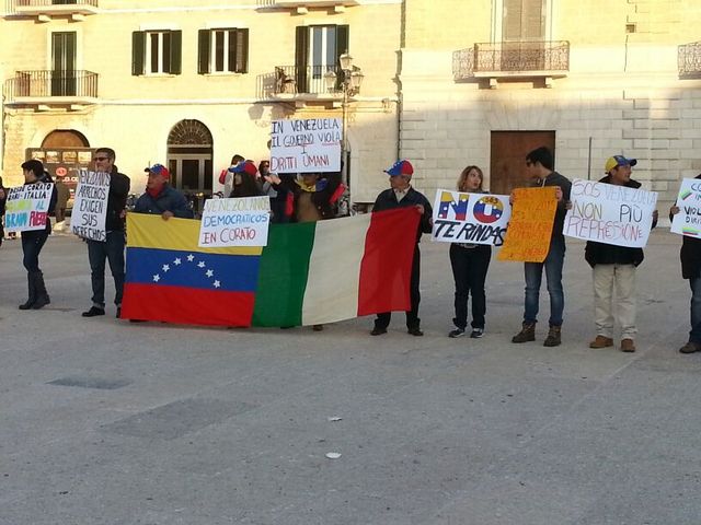 Un sit in di protesta contro la violazione dei diritti umani nel loro paese è andato in scena ieri pomeriggio, in piazza Quercia, ad opera di turisti venezuelani. Una ventina di persone ha esposto bandiere del proprio paese e cartelli per denunciare pubblicamente le prevaricazioni che il popolo venezuelano starebbe subendo da parte del governo di Nicolás Maduro, il successore di Hugo Chávez.