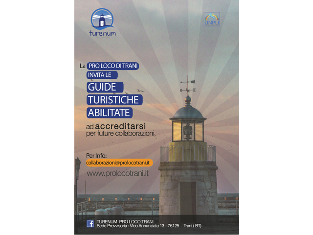 Chi volesse avere maggiori informazioni può inviare una mail a turenum@prolocotrani.it oppure contattare la Pro Loco sulle pagine ufficiali di Facebook e Twitter.