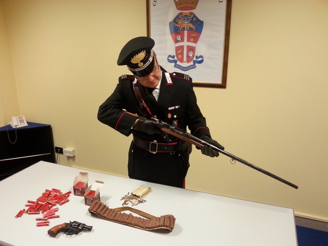 Durante un servizio di controllo del territorio nelle campagne tra i comuni di Trani e Barletta, i militari si sono portati presso un azienda agricola, dove, all’interno di un locale in cui l’uomo svolge abitualmente il servizio di custode, hanno rinvenuto e sequestrato un fucile da caccia cal. 36 magnum in buono stato di conservazione e con il colpo “in canna”, una pistola revolver a salve, cal. 380, sprovvista del previsto tappo rosso con 4 colpi nel tamburo, sottoposti a sequestro unitamente a 150 cartucce di vario calibro per uso da caccia e sportivo, il tutto illegalmente detenuto.