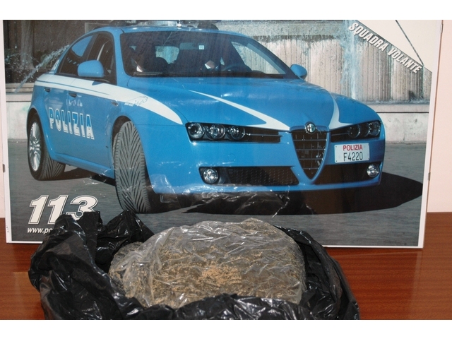 La busta di cellophane trasparente, mal sigillata e bagnata, conteneva 3 kg. e 500 grammi di marijuana.