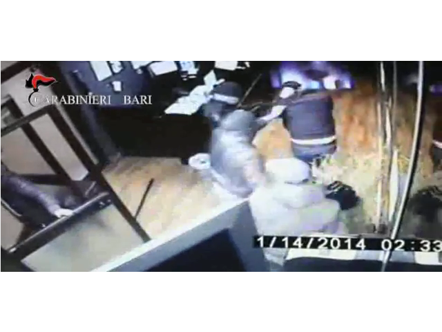 Pistola alla mano, dopo aver sfondato i vetri della porta di ingresso, hanno fatto irruzione in una sala slot di Trani aggredendo brutalmente il titolare ed impossessandosi di 3500 euro in contanti. Due di loro, incastrati dalle telecamere di videosorveglianza dell’esercizio pubblico e dai loro profili “facebook” sono stati identificati e sono finiti in manette. Si tratta di due giovani incensurati di Bari, di 22 e 33 anni, arrestati dai Carabinieri della Compagnia di Trani, in esecuzione di un’ordinanza di custodia cautelare agli arresti domiciliari, emessa dal Gip del Tribunale di Trani su richiesta della locale Procura della Repubblica, con le accuse di rapina aggravata in concorso e lesioni personali.