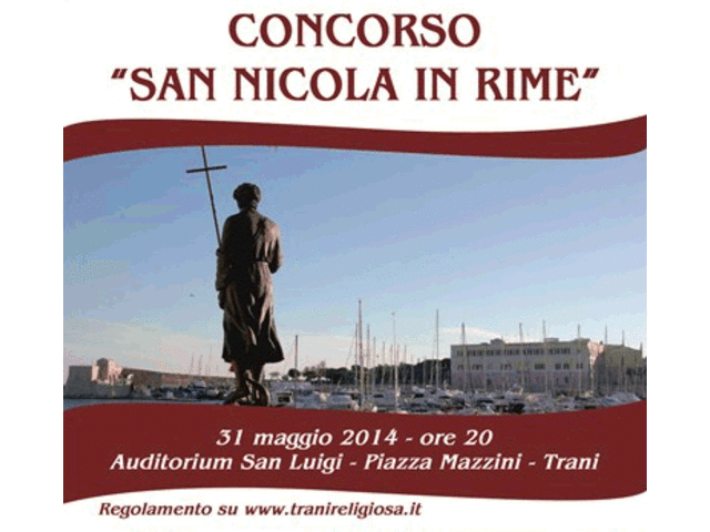 Si chiuderà questa sera, con la premiazione, il primo concorso di poesie indetto da Trani Religiosa in occasione della festa liturgica del Santo Patrono di Trani, San Nicola il Pellegrino.