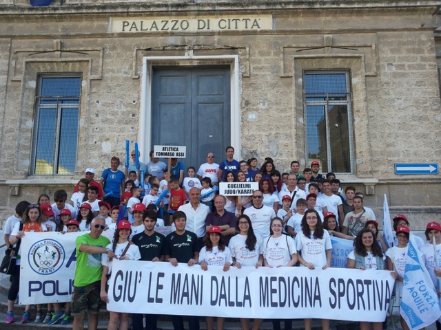 Promessa mantenuta. Insieme con la sfilata delle associazioni sportive, non è mancata, nel corteo in occasione della Festa nazionale dello sport, promossa dal Coni, la protesta per i disagi che l'utenza sportiva sta avvertendo a seguito della sospensione del servizio di Medicina dello sport presso l'ospedale di Trani.