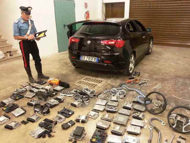 Nel veicolo i militari hanno rinvenuto e sottoposto a sequestro un vero e proprio arsenale di strumentazioni elettroniche e meccaniche idonee a rubare ogni tipo di autovettura (44 centraline di vari modelli, 13 pannelli elettrici, 7 quadri di accensione, chiavi di avviamento codificate, volanti, funi di traino e numerosi arnesi da scasso).