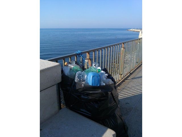 Due bustoni stracolmi di lattine, recipienti in plastica ed altri rifiuti legati alla balconata tra cattedrale e castello svevo, sotto gli occhi di decine e decine di turisti alquanto sconcertati nel trovarsi davanti a sé questo tipo di souvenir di Trani.