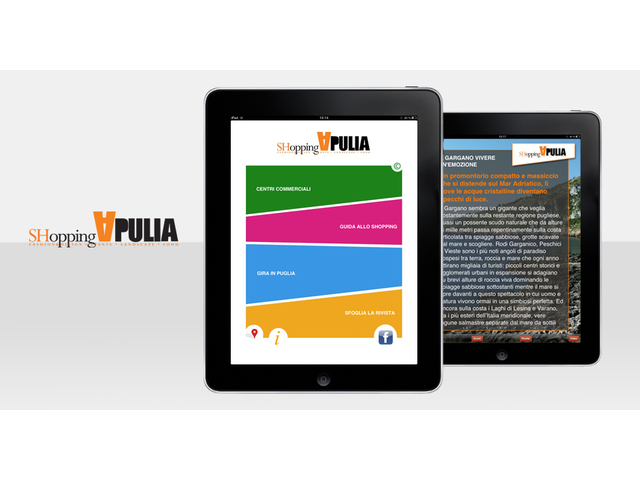 In questo contesto, con l’obiettivo di valorizzare le eccellenze artistiche e culturali di questa terra e di fornire uno strumento di informazione e orientamento a tutti i turisti che ogni anno la attraversano, da una fitta rete di rapporti con associazioni ed enti del territorio, nasce ShoppingApulia. Presentata in due lingue - italiano e inglese – nelle versioni cartacea e digitale, si propone di guidare i turisti attraverso dieci itinerari turistici che accompagnano il lettore tra i profumi e i colori di una terra affascinante come poche, aprendo una finestra sulle cattedrali, sulle spiagge, sui castelli, sulla natura e sugli splendidi borghi, per una passeggiata all’insegna del relax e del divertimento che non può che culminare tra le vie dello shopping, nelle gallerie dei dieci centri commerciali coinvolti nel progetto.