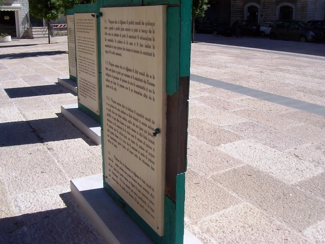 La criticità della situazione è evidenziata anche dalla chiusura del fondaco e delle transenne che lo circondano, non solo esteticamente sgradevoli ma, prima di tutto, pericolose. Altro problema è Palazzo Vischi, vecchia sede della biblioteca comunale, abbandonato a se stesso e, anch'esso, con zone a pericolo di crollo. Per non parlare dello stato delle tavole raffiguranti gli Statuti marittimi, che necessitano di immediati interventi e/o trasferimento ad altra sede, possibilmente, al chiuso.