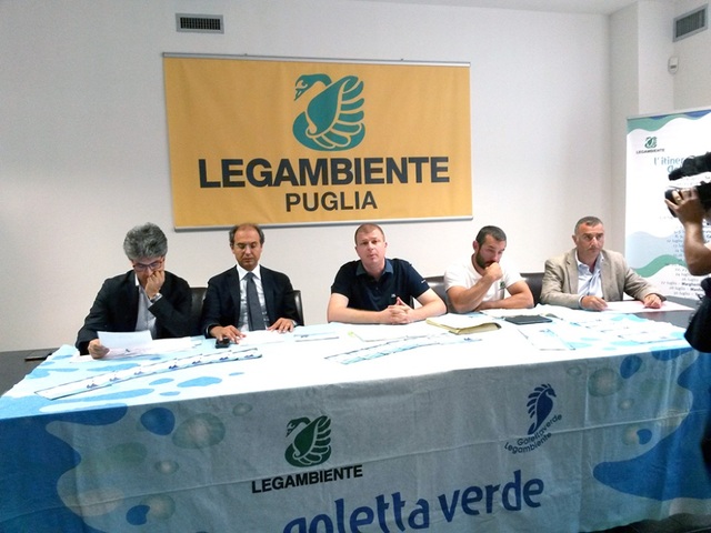 È questa la fotografia scattata dalla celebre campagna di Legambiente dedicata al monitoraggio ed all’informazione sullo stato di salute delle coste e delle acque italiane, realizzata anche grazie al contributo del COOU, Consorzio Obbligatorio degli Oli Usati, che in questi giorni sta facendo tappa in Puglia. L’istantanea regionale sulle acque costiere dell’equipe tecnica della Goletta Verde è stata presentata questa mattina, in conferenza stampa a Bari, da Simone Nuglio, portavoce di Goletta Verde e Francesco Tarantini, presidente di Legambiente Puglia, alla presenza di Giovanni Giannini, assessore Infrastrutture e Lavori pubblici della Regione Puglia, Nicola Ungaro, Arpa Puglia e Nicola Giorgino, Autorità Idrica Pugliese.