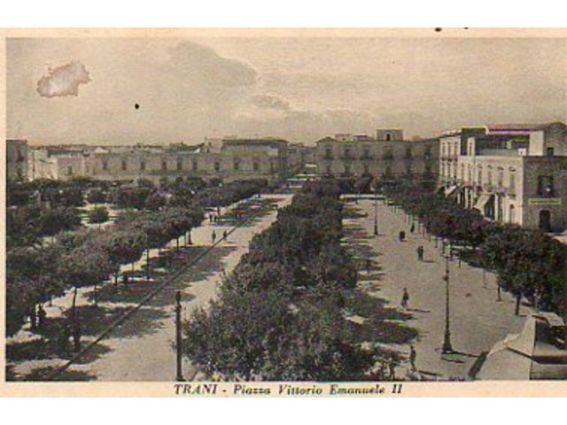 La Piazza forniva qualsiasi ben-di-Dio. Ricordo la varietà di meloni e angurie, una vera piuma nel cappello. Ricordo anche una frase dipinta su una casa: ”Rivedrei ben volentieri la vostra Trani, tutta bianca e silenziosa, mi rivelò l'animo della gente di Puglia e l'oriente vicino. Ne ho un ricordo vivo, ineffabile, duraturo" (frase attribuita a B. Mussolini, nda).