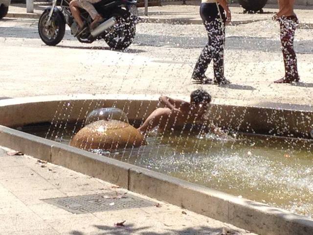 È accaduto ieri mattina, in piazza Libertà, dove due bambini si sono immersi, completamente nudi, nella vasca ornamentale ai piedi dell’obelisco della Madonna Immacolata: dentro, acqua sporca e rifiuti lanciati nel tempo da chi scambia la vasca per una gran cestino dell’immondizia: fuori, compiaciuti e divertiti, i genitori ad assistere allo spettacolo alquanto imbarazzante.