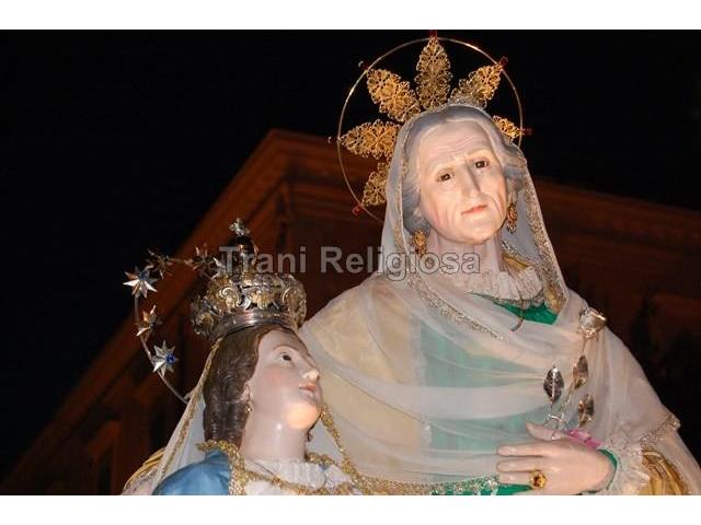 Per molti è la festa attesa tutto l'anno per lo spettacolo, dicono, pirotecnico piu coreografico, per altri semplicemente la patrona della propria confraternita: Sant'Anna nella città di Trani è capace di unire tutta questa gente. A partire dal tardo pomeriggio di ieri luglio una buona parte di questa gente ha seguito la processione che come ogni anno esce dalla chiesa di San Giovanni e percorre dapprima le strade del centro e poi si dirige nel quartiere di appartenenza, composto da stradine molto strette, dove gli abitanti riescono anche a sfiorare il lento passaggio della processione mentre lanciano bigliettini con su scritto "W SANT'ANNA".