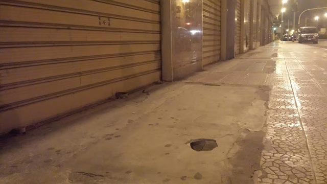 Pericolo, da ieri sera, lungo il marciapiede di corso De Gasperi all’altezza del civico 24. Come le foto mostrano, si è verificato il parziale cedimento di una grata sovrastante il piano interrato dello stabile adiacente quel marciapiede. Al momento in cui si è ritratto lo stato dei luoghi, vale a dire intorno alla mezzanotte, nessun tipo di cautela si era ancora assunta e, pertanto, si invitano i cittadini a prestare la massima attenzione, soprattutto con riferimento a bambini ed anziani.