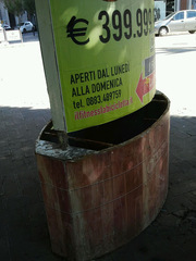 La terza considerazione è che tutto questo non accadrebbe se, come sarebbe dovuto essere da tempo, ci fosse stato un piano degli impianti pubblicitari che avrebbe regolamentato la presenza, ove mai fosse stata consentita, di questi totem in giro per la città: allo stato, questi e tutti gli altri impianti sarebbero da considerarsi abusivi, mentre il piano ancora non giunge in consiglio, quantunque su Facebook se ne proclami l’imminente approdo in aula.