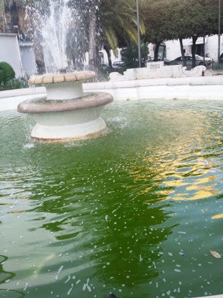 Zampillano sì, ma in un brutto verde le acque delle fontane ornamentali di piazza della Repubblica, opere non sempre bene onorate dello scultore Antonio Bassi. Ancora una volta, infatti, fra carenza di manutenzione ed inciviltà, favorita dall’assenza totale di controlli, i due manufatti si mostrano a passanti e turisti pieni di rifiuti, la cui presenza ha anche, inevitabilmente mutato il colore dell’acqua.