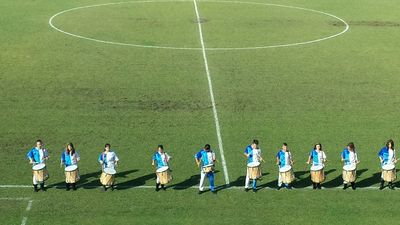 Partita spenta anche nel secondo tempo, il ritmo viene spezzato solo dal ricordo delle ragazze in divisa biancazzurra che prima della gara e tra primo e secondo tempo si sono esibite a bordo campo con i tamburi.