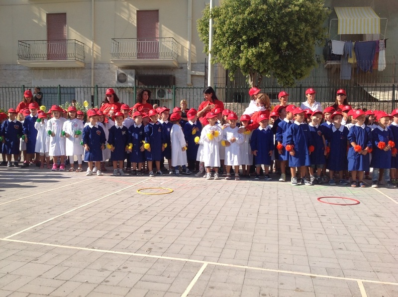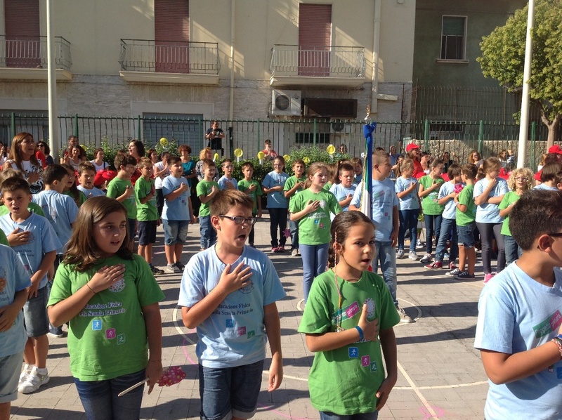 Le note di Happy hanno accompagnato i momenti di questo giorno di festa: canti, balli,presentazione delle nove classi prime, poi tutti ,grandi e piccoli ,con grande emozione e partecipazione a cantare l’inno di Mameli.