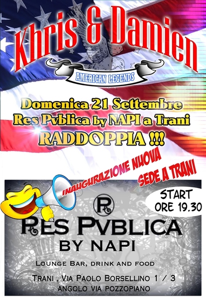 Nuova sede e nuova realtà, stesso nome per un bar che raddoppia la propria presenza: Res Pvblica. Sarà inaugurata oggi, domenica 21 settembre la sede in via Borsellino 1/3 angolo via Pozzopiano.