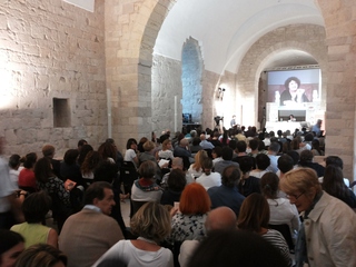 La pioggia non ha fermato gli appassionati e i fedelissimi de I Dialoghi di Trani, festival che riscuote ogni anno sempre più successo e coinvolgimento. I saluti della dottoressa Margherita Pasquale, direttrice del Castello Svevo, culla dei Dialoghi, hanno aperto le danze per il Festival nella struttura federiciana purtroppo - causa pioggia - nei locali al chiuso.