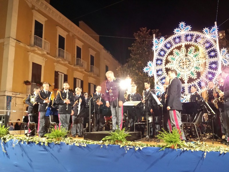 Un autentico trionfo per la Fanfara della Polizia di Stato, che si è esibita sabato sera, in piazza Libertà, in occasione della conclusione della festa dei Santi Medici, Cosma e Damiano, e, soprattutto, per ricordare Rino Lafiandra giovane poliziotto tranese venuto a mancare, all'età di 33 anni, per un male incurabile.