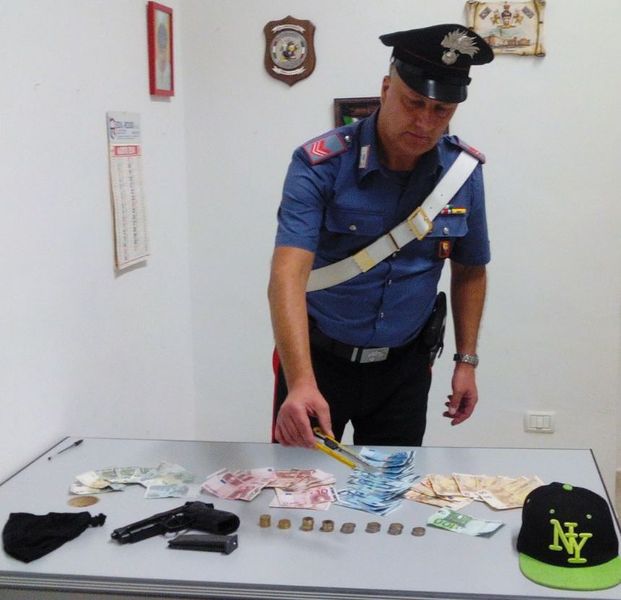 Bloccati in Contrada delle Monache, i due, al termine della perquisizione personale venivano trovati in possesso del taglierino, della pistola, risultata poi essere una scacciacani priva del tappo identificativo di colore rosso nonché dell’intera refurtiva pari a 1100 euro che è stata restituita all’avente diritto. Il ciclomotore, privo di targa, ed i capi di abbigliamento d’abbigliamento usati per il travisamento sono stati sottoposti a sequestro.