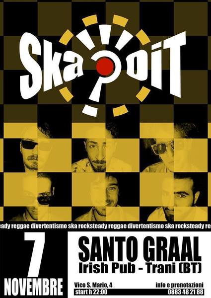Gli Skaipot vi aspettano oggi, venerdì 7 novembre, al Santo Graal Irish Pub di Trani. Vestiti comodi e tanta energia per una serata dedicata al ballo sfrenato.