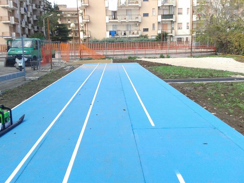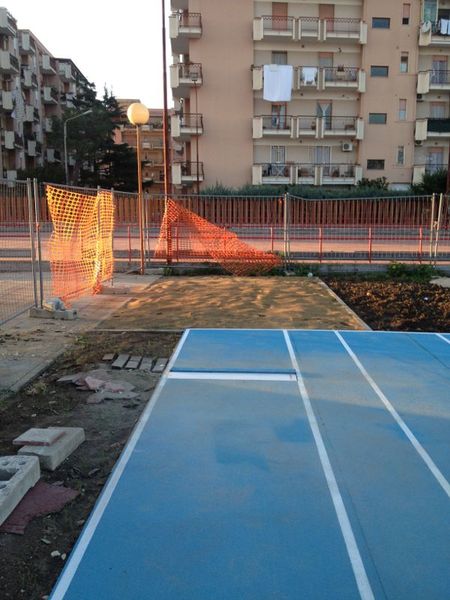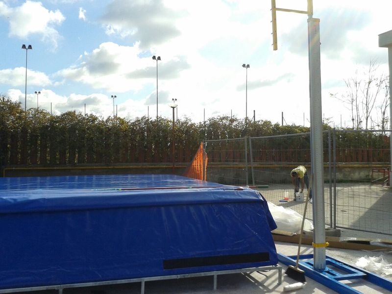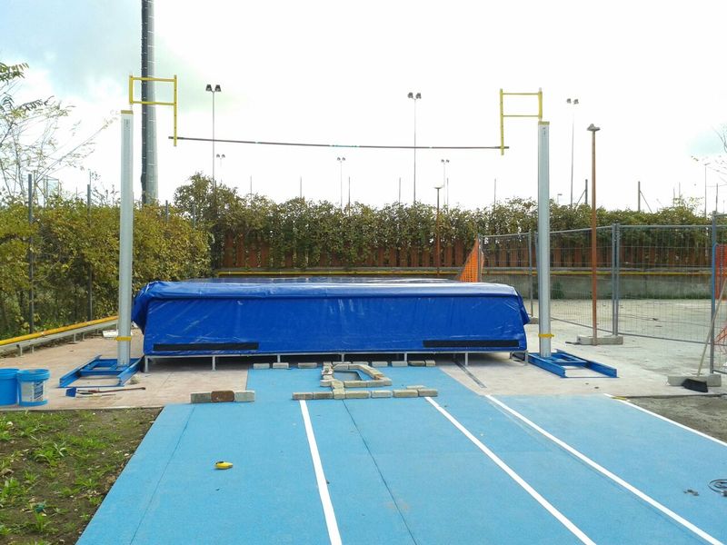 È arrivato il materiale tecnico utile al completamento delle pedane del salto con l'asta, salto in lungo e getto del peso, in fase di ultimazione nell'area adiacente il PalaAssi, in via Falcone. I lavori sono stati svolti e completati, per quanto riguarda le parti in muratura, dall'impresa Leonardo Napoletano, aggiudicataria per 41.500 euro del relativo bando di gara, il cui importo a base d'asta era stato di 53mila euro, frutto di un finanziamento ottenuto dal Gruppo di azione locale «Ponte Lama Trani-Bisceglie».