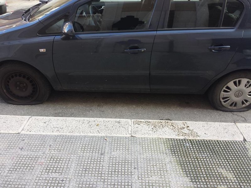 Un altro episodio si è registrato in via Caldarone davanti alla sagrestia della chiesa di Santa Maria del Pozzo: un'auto si è presentata stamattina con tutte e quattro le ruote forate. In questo caso, parlare di episodio come accidentale appare quanto meno azzardato.