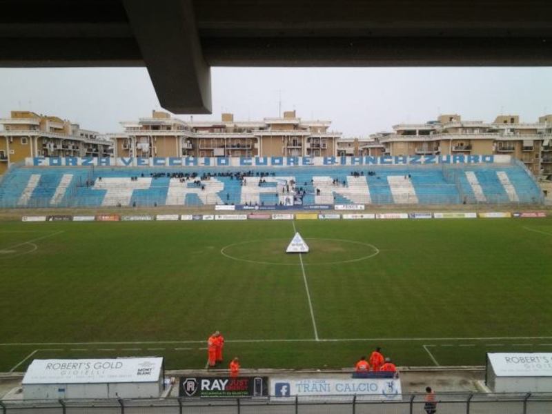 Alla mezz'ora il Trani si rende pericoloso nell'area di rigore del Vieste ma Paolo Augelli blocca l'ultimo passaggio che sarebbe giunto tra i piedi del liberissimo Pasquadibisceglie. I biancazzurri sembrano peccare d'esperienza rispetto alla squadra ospite che in campo regge meglio la pressione.