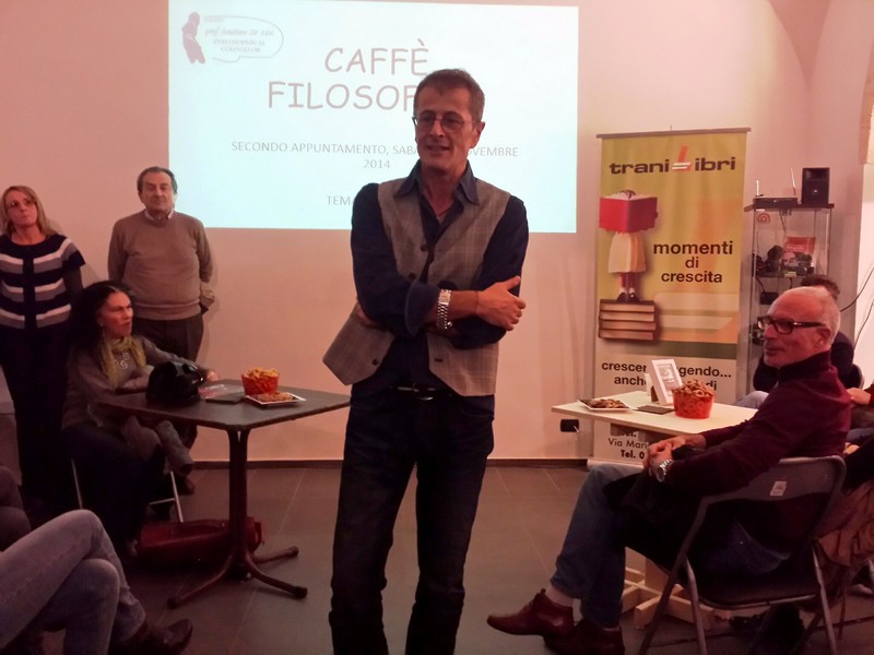 Quello che andrà in scena questo sabato, 6 dicembre, alle 17.45, presso la libreria Tranilibri, sarà il terzo appuntamento della serie degli incontri dal titolo «Caffè filosofico». L'idea è di Gianni De Iuliis, docente di filosofia presso il liceo scientifico Valdemaro Vecchi, nonché consigliere comunale, vent'anni fa, con il centrosinistra durante l'amministrazione del sindaco Giancarlo Tamborrino.