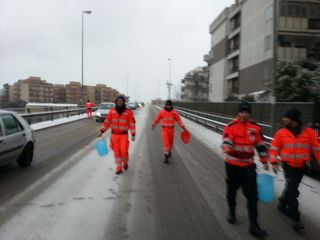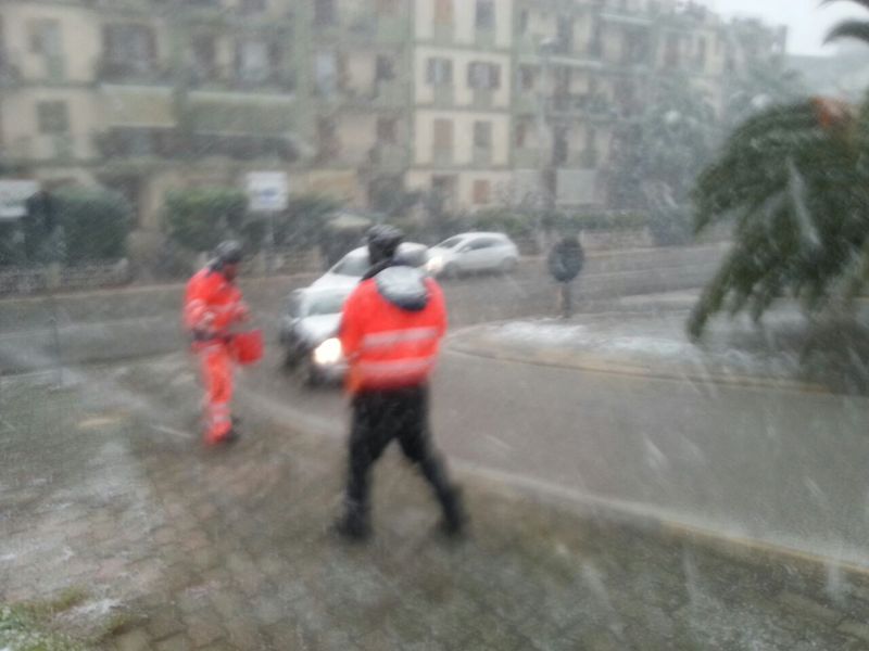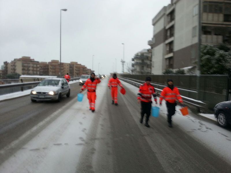 Sono in azione i mezzi i mezzi spargisale e si prova a fare di necessità virtù spazzando, almeno le strade principali, per una più fluida circolazione. Sul cavalcaferrovia di corso Imbriani intervenuto anche uno spalaneve.