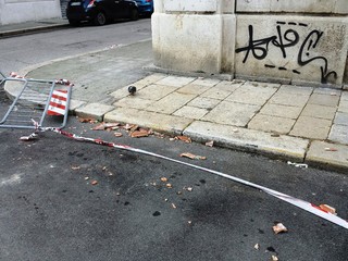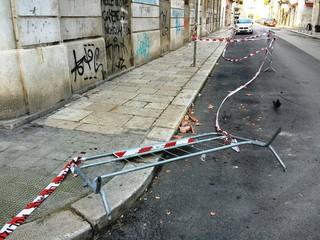La forte intensità del vento avrebbe provocato il ribaltamento di tegole, alcune delle quali sono finite in strada, sul versante di via Lambertini, senza peraltro attingere passanti, veicoli e/o altri oggetti.