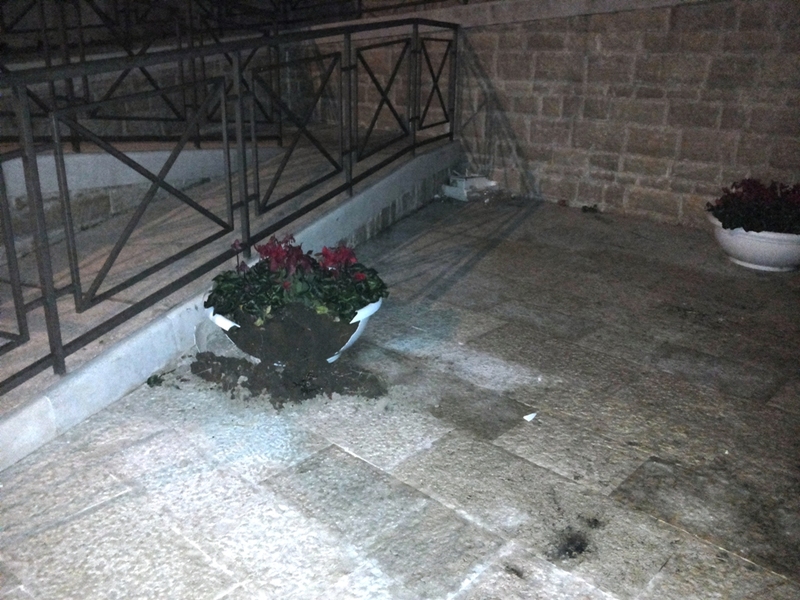 Porta Vassalla vandalizzata la notte di Capodanno. Oggi il bilancio è di due fioriere praticamente distrutte, dopo che la zona, quella notte, era stata trasformata anche in una discarica a cielo aperto.