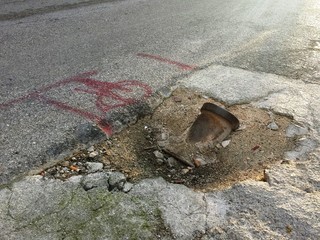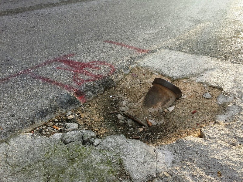 La questione, peraltro, sembra essere completamente sconosciuta al Comune di Trani, per le segnalazioni consequenziali all'ente proprietario e gestore della rete idrica. Come si potrà notare dalle immagini, ai bordi di quella porzione d'asfalto vi sono dei segnali, rilasciati con lo spray, preludio di lavori che, probabilmente, non si sono più compiuti.