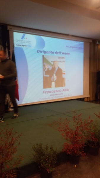 Particolarmente emozionante per i tranesi presenti in sala, il riconoscimento che la Fidal Puglia ha voluto tributare alla memoria di Franco Assi come “dirigente dell’anno”. Mentre il presentatore della manifestazione leggeva la motivazione che metteva in rilievo le grandi doti umane ed organizzative, con i tanti successi conseguiti in questi ultimi anni dalla Sua società sportiva e i grandi eventi estivi dei Memorial che hanno portato a correre per le strade della città di Trani i più grandi campioni del mezzofondo italiano ed internazionale (due di questi erano in sala), tutti i presenti in modo spontaneo si sono alzati per accompagnare con un grande e lungo applauso la consegna del riconoscimento che era stato già deciso prima della Sua scomparsa.