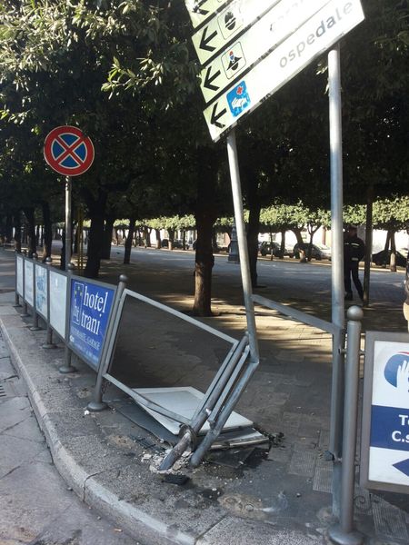 Un’auto impazzita ha distrutto, questa notte, parte delle transenne parapedonali e delle insegne stradali di piazza della Repubblica. Probabilmente s’è trattato di una vettura che provenendo a tutta velocità da via Cavour, ha perso aderenza sul basolato, reso viscido dall'umidità, impattando contro le strutture metalliche.